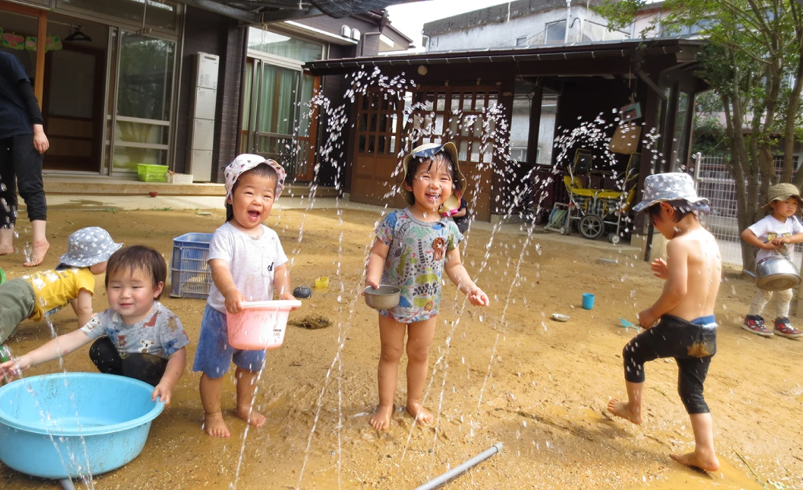 どろんこあそび、リズム運動、木のおもちゃなど、