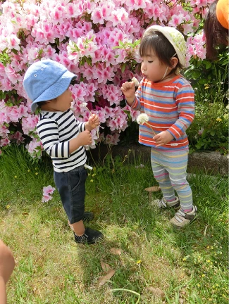人見知りが激しい方だったので入園してしばらくは毎日のように登園時のバイバイで泣いていましたが、今ではバイバイをせずに遊び始めてしまいます(笑)園庭でお友達と遊んだり大きい子にお世話をしてもらったり毎日楽しそうに通っています。